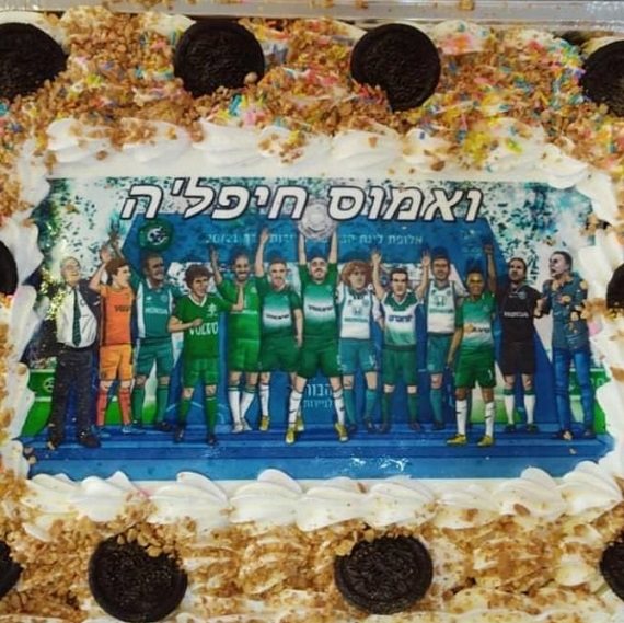 המאזינה עליזה שלחה עוגה לכבוד ניצחונם של חיפה באליפות • גיא שנמצא באילת אמר שזו העוגה שהיה שובר בה את הדיאטה: "הייתי לוקח כף גדושה של קצפת"
